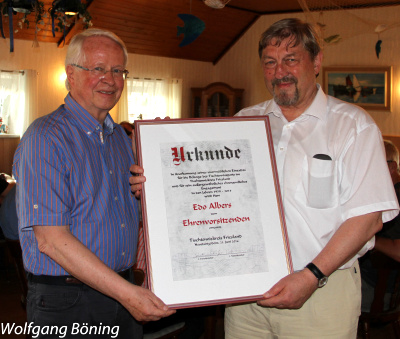 Edo Albers (MTV Jever) jetzt Tischtenniskreis-Ehrenvorsitzender